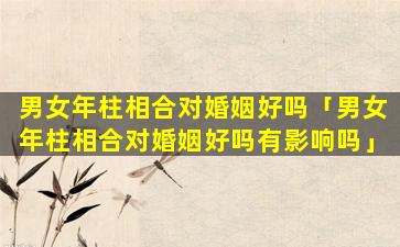 因 🐬 此,男,女年柱相合对婚姻的影响只是一 🐎 个参考因素不能单凭这一点就判断婚姻的吉凶。需,要。综合考虑八字整体信息并结合实际情况来分析