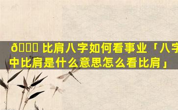 八字中 🦈 比劫成局的 🦅 人 🦍 :