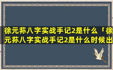 《徐元荪八字实 🐘 战 🐼 手记二》