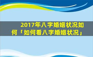 2017年八 🌵 字 🌺 婚姻状 🦈 况