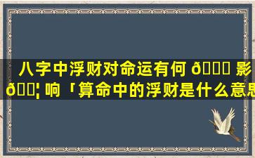 浮 ☘ 财对命 🦁 运 🐕 的影响