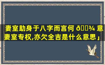 “妻室助身于八字而言”是指在八 🦉 字命理中妻,子的命格对 🌳 丈夫的命格产生积极影响。