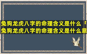命理含义兔 🦊 狗龙虎八字的命理含义如下: