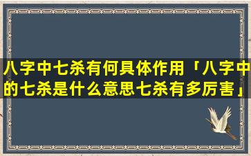 七 🐕 杀在八字 🐴 中的 🦆 具体作用