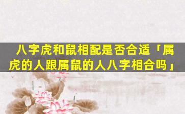 根据中国传统生肖配对的说法,“八字虎”和“八 🌾 字”鼠,相配,是否合适结婚需要结合双方的具体生辰八字进行详细分析以下是一些较为常见的配对原则: