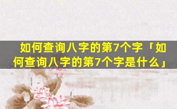 步骤 3:计 🌹 算八字 🦆 的第 7 个字 🐛