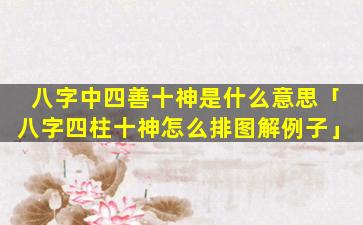 四善十神在八字命理中扮演着重要的角色,可以判断一个人的性格、运势 🐦 吉凶 🌷 。