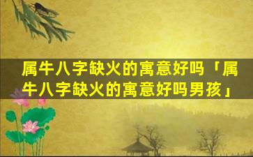 属牛缺火在传统命理学中寓意并不 🦅 算好,但具体运势如何仍需结合八字格局、流年大运等综合分析。