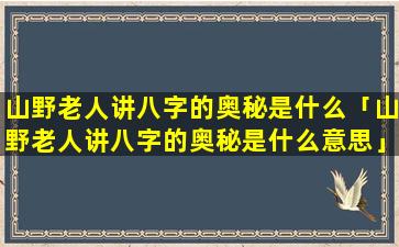 “山野老人讲八字的 🦁 奥秘”这“句”话通常意指一位自号为山野老人的人讲 🐯 解或传授四柱预测(也称八字的 💮 )精髓。