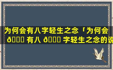 八字轻并不一定意味 🕊 着一 🌷 定会生轻生念头。