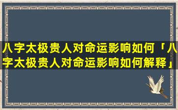 八字太极贵人对一个人的命运有着积极的影响,但,其作用会受到多种因素的影响需要具体分析才能判断其准确的影 🦉 响程度。