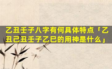 乙丑壬子 🐘 八字的 🐴 特 🌿 点: