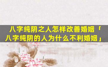 八字 🐴 纯阴 💮 之人的婚姻特征