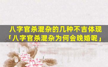 八字官杀混杂的人容易晚 🐼 婚,原因在于他们的性格挑剔、感、情,不稳定烂桃花 🌲 多以及婚姻宫受损等因素。