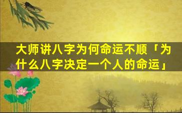 八字命运 🌷 不顺的原因 🦋