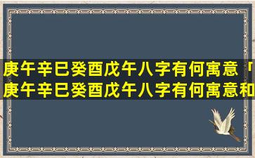 庚午 🐒 辛巳癸 🐛 酉戊午