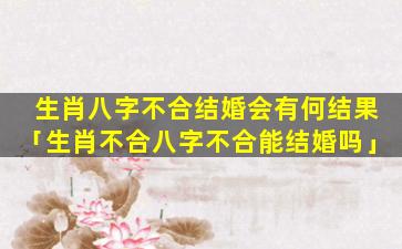 根据中国传 🐋 统生肖八字命理的说法,婚,配中存在生肖八字不 🐼 合的情况可能带来以下结果: