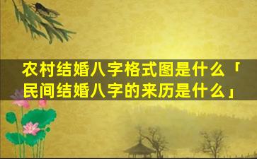 民 🐠 間結婚八字 🐝 的 🐈 來歷