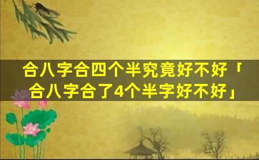 “合八字合 🌻 了 🦍 4个半字”的具体含义取决于不同的八字合婚方法。