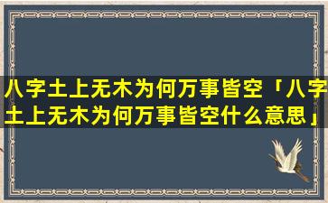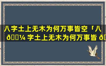 “八字 🕸 土上 🦁 无木为何万事皆空”的说法并不是准确的。在八字命 🌷 理中土为,承“载”之,象“木为”生。发之象