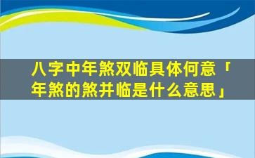 “八字中年 🦆 煞双 🐦 临”在八字命理中指: