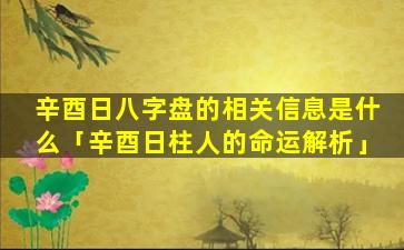 辛 🦆 酉 ☘ 日八字 🐵 100例