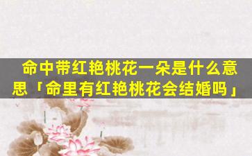 “命中带红艳桃花 🐅 一朵”是 🌻 指一个人的命 🦈 格中拥有一段非常旺盛的姻缘或爱情运势。