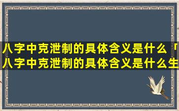 克泄制是八字命理中的一个概念,指命主出生 🍀 的年月日時八个字之间 🌴 的相互作用关系: