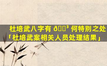 总体来看,杜,培武的八字格 🐳 局 🦅 较高属于富贵双全、事业有 🕸 成的命局。