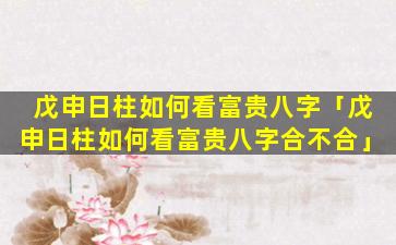 戊申日柱 🪴 如何看富 🐋 贵 🌷