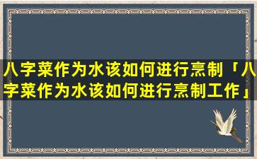 步骤:1. 清洗八菜水 🐘 :将八 🕷 菜水冲 🐴 洗干净,去除泥沙。