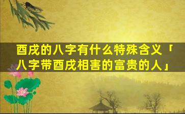 八 🌲 字带酉戌相害的富贵 🌷 之 🐦 人