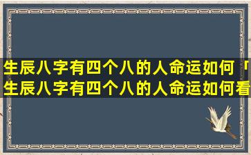 生辰八字中有四个八 🐞 「的」人,其命运好坏取决 🦈 于具体八字的组合和旺衰。