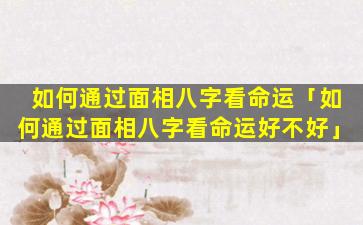 综合分析结合面相 🐦 和八字,可以对一个人的命运做出相对 🐶 全面的判断: