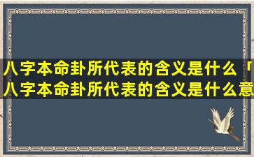 在八字 🐝 命理中,根据出生时的年、月、日时、可,以,推、算出本命卦代表个人的先天体质性格特征和运 🐒 势走向。