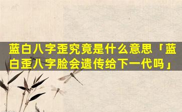 蓝白歪 🦈 八字 🐘 脸的遗传性取决于它 🕸 的原因: