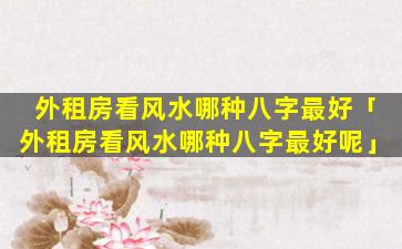 适合外租房 🦍 风水较好的八字: