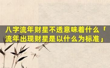 流 🐘 年 🐒 出现财星的 🐠 标准: