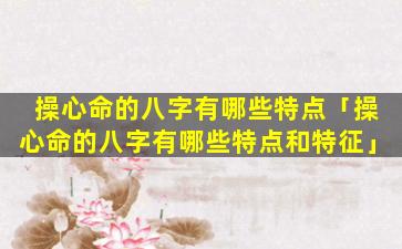 “算命的说操心的命”一般指命理 ☘ 中具 🐎 有以 🦁 下特征: