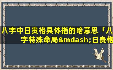 在八字命理 🐦 中,日贵格是指日干为十神中的正官、七,杀的人即日柱的天干为正 🦄 官或七杀 🐅 。