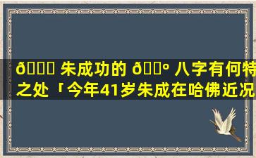 总体而言 🦅 ,朱,成,功,的 🍁 八字身强用神有力贵人相助运势亨通属于事业有成、前途光明之象。