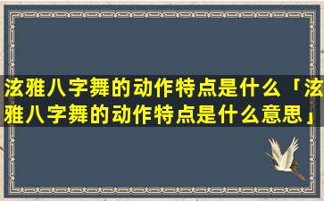 泫 🐅 雅八字舞动 🐱 作的特点: