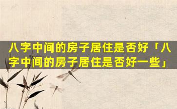根据传统的中国风水学,八,字中,间的房子居住是否好并没有 🦆 明确的答案因为风水学是一个复杂体系 🐈 需要考虑多种因素。