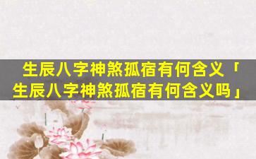神煞是古人根据生辰八字推算出来的吉 🦊 凶星宿,其中“孤宿是”一种不吉利的神煞。