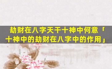 劫财的含义劫财在天 🐝 干中,代表竞争争、斗争 🐯 、夺、掠夺等含义。