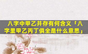 需要注意的是,八,字中甲乙并存的含义还需结合整 🕊 个八字格局来具体分析不可一概而论。