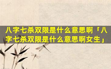 八字 🐛 七杀 🌴 双限对于女性的含义 🌲