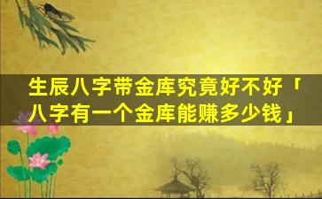 生 🕷 辰八字带金库好不好,需要具体分析八字格局和五行旺衰。
