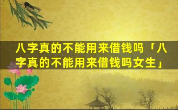 用八字来借钱有迷 🐅 信之嫌 🐠 ,容易导致错误判 🦅 断。