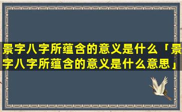 景字 🦊 八字所蕴含的 🐵 意 🕸 义
